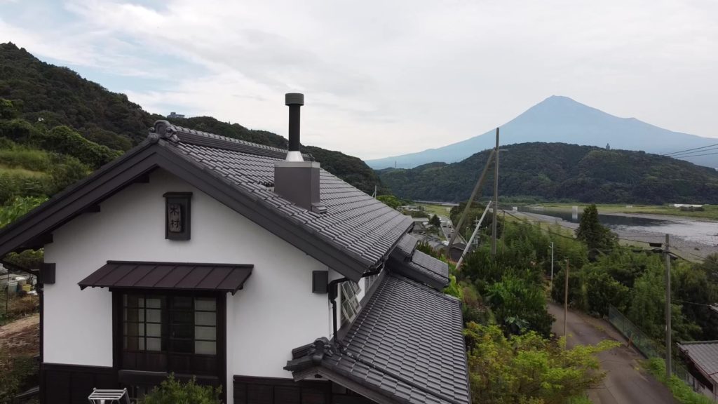 富士山と宿。なかなかいい天気ですがすがしい朝を迎えました。